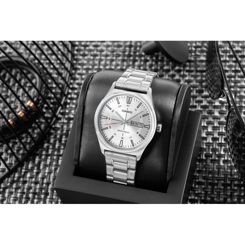 Die Casio MTP-V006 ist eine Uhr für Männer, die Wert auf Präzision, Klarheit und zeitloses Design legen, das stets geschmackvoll bleibt.
