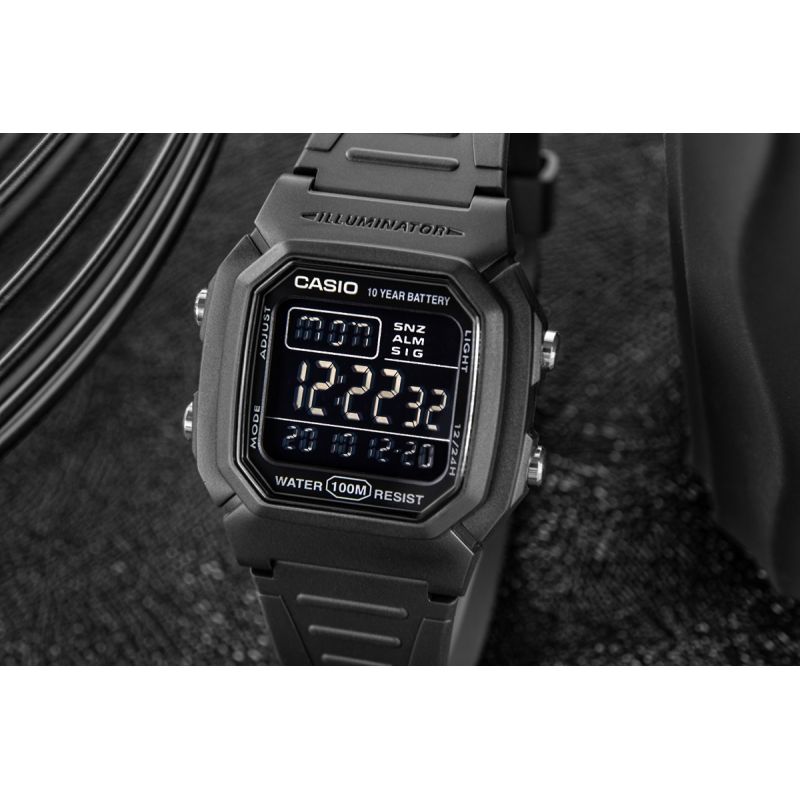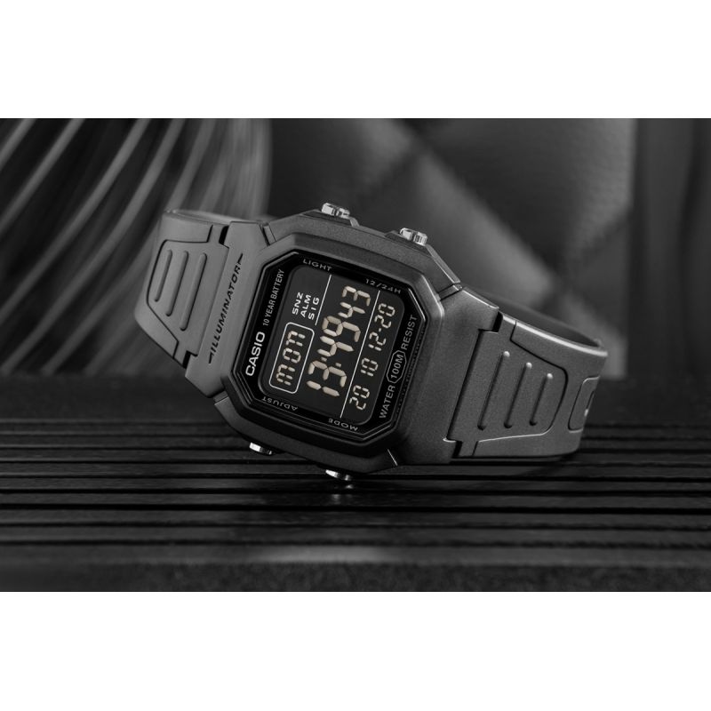 Die Casio W-800H Herrenuhr bietet Zuverlässigkeit in einem übersichtlichen Format – eine moderne Digitaluhr mit großem Display für schnelles und einfaches Ablesen der Uhrzeit. Ausgestattet mit Wasserdichtigkeit bis 100 Meter, einer Batterielaufzeit von 10 Jahren, LED-Hintergrundbeleuchtung und weiteren Funktionen, zeigt die Uhr alle wichtigen Informationen – Uhrzeit, Datum und Wochentag – übersichtlich und gut lesbar an. Mit Funktionen wie 1/100-Sekunden-Stoppuhr, Dualzeit und Wecker mit Schlummerfunktion ist sie ideal für Training und Reisen. Die langlebige LED-Hintergrundbeleuchtung mit Leuchteffekt sorgt für gute Ablesbarkeit auch im Dunkeln. Die robuste Konstruktion garantiert Langlebigkeit im Alltag und bei Outdoor-Abenteuern.