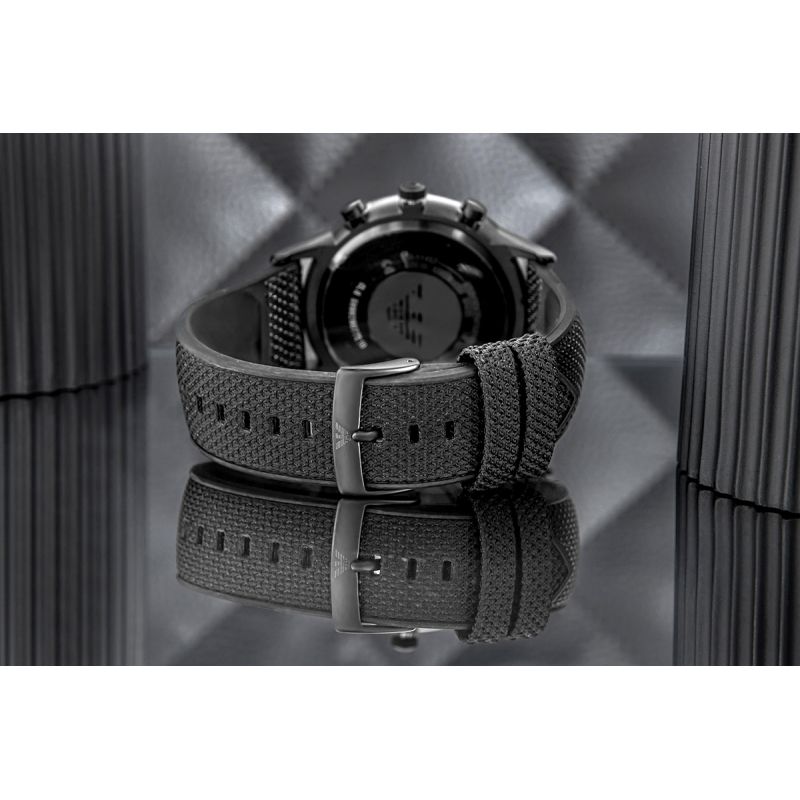 Das Armband des Emporio Armani Renato AR11457 besticht durch seine einzigartige Materialkombination: Eine textile Oberfläche und eine Silikoninnenseite sorgen für hohen Tragekomfort und Langlebigkeit. Das weiche Textilgewebe verleiht dem Armband eine elegante, moderne Optik, während die Silikonunterseite für perfekten Sitz und Widerstandsfähigkeit im Alltag sorgt. Dank dieser Kombination ist das Armband leicht, angenehm auf der Haut und auch nach längerem Tragen komfortabel. Die schwarze Farbe unterstreicht die Vielseitigkeit und den maskulinen Charakter der Uhr und harmoniert perfekt mit ihrem modernen Design. Diese Uhr ist die ideale Wahl für Männer, die Wert auf Stil, höchsten Tragekomfort und optimale Funktionalität legen.