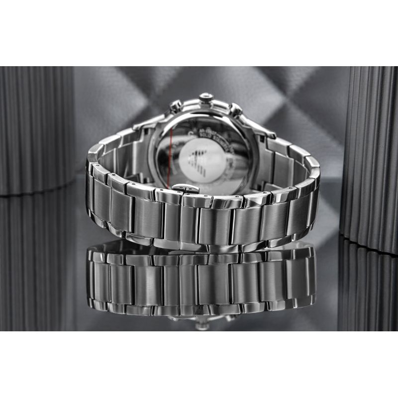 Die Emporio Armani Renato Herrenuhr ist die Quintessenz moderner Eleganz, in der klassisches Design auf raffinierten Stil trifft. Diese Uhr ist für den selbstbewussten Mann, der weiß, dass wahre Stärke im Detail liegt. Ihr Design strahlt Ruhe und Präzision aus und unterstreicht gleichzeitig Individualität und makellosen Geschmack. Jedes Element wurde mit akribischer Liebe zum Detail gefertigt und schafft so ein harmonisches Ganzes, das für Luxus und zeitlose Schönheit steht. Mit diesem Modell am Handgelenk brauchen Sie keine Worte, um sich auszudrücken – seine Eleganz spricht für sich. Diese Uhr ergänzt jedes Outfit und verleiht ihm Klasse, Charakter und Selbstbewusstsein. Der Emporio Armani Renato Chrono ist mehr als nur eine Uhr – er symbolisiert einen Lebensstil, der von Qualität, Liebe zum Detail und bewusster Wahl geprägt ist. Er ist Ausdruck von Männlichkeit, Eleganz und Unabhängigkeit, der Aufmerksamkeit erregt und die Einzigartigkeit des Augenblicks hervorhebt.