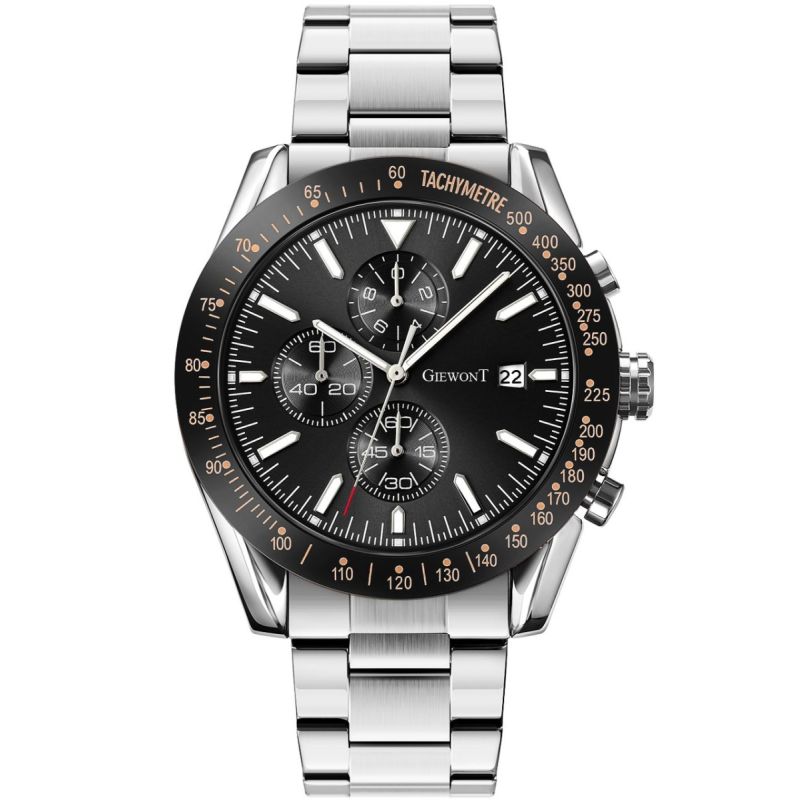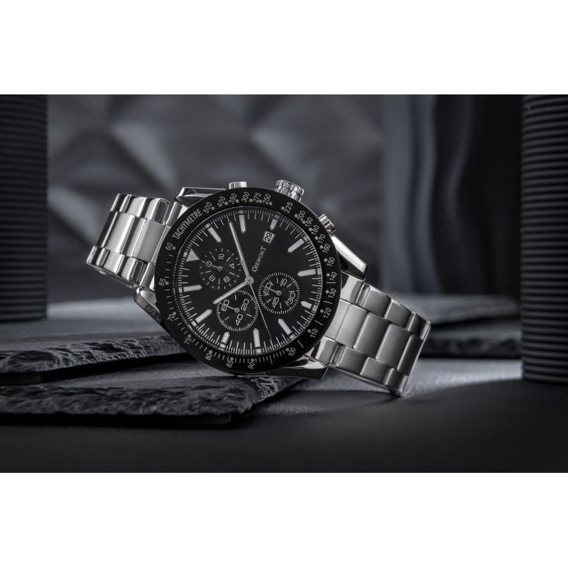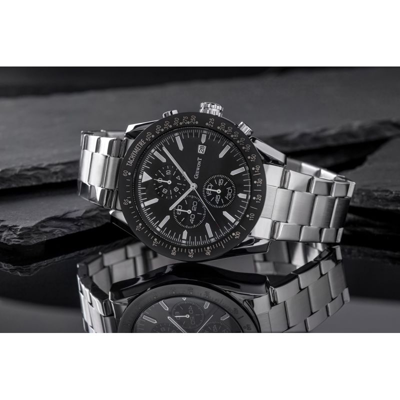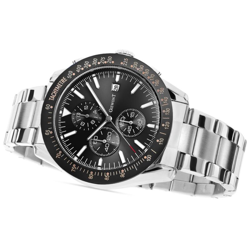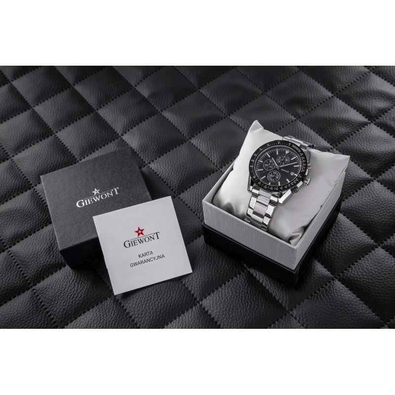 Die Herrenuhr Giewont GW8620-1 ist mit Chronographen-Sekunden, Stoppuhr-Minuten, 24-Stunden-Zeitanzeige und Datumsanzeige ausgestattet.