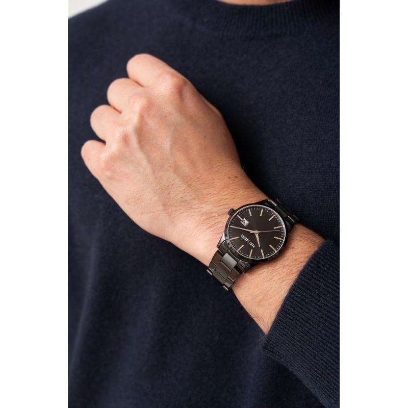 Dieses Modell mit Datumsanzeige, elegantem schwarzem Armband und schwarzem Zifferblatt strahlt maskulinen Stil aus und schafft eine einzigartige Komposition, mit der Sie in jeder Gesellschaft auffallen. Es ist mehr als nur eine Uhr; es ist ein Ausdruck Ihres raffinierten Geschmacks, der in jeder Situation Aufmerksamkeit erregt und Respekt einflößt.