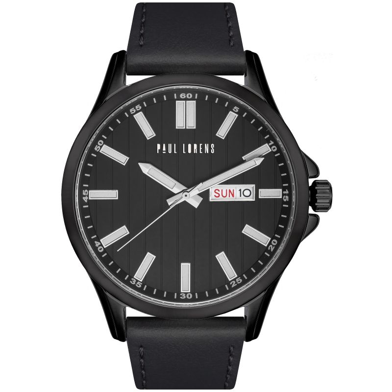 Die Herrenuhr Paul Lorens PL8071A3-1A1 ist ein eleganter und funktionaler Zeitmesser, der sich perfekt für den Alltag und formelle Anlässe eignet. Sie vereint modernes Design mit hochwertiger Verarbeitung und garantiert so Zuverlässigkeit und ein stilvolles Erscheinungsbild. Mit Wochentags- und Datumsanzeige, einem eleganten schwarzen Lederarmband und einem schwarzen Zifferblatt strahlt dieses Modell maskulinen Stil aus und ist ein einzigartiges Accessoire, das in jedem Umfeld auffällt. Sie ist mehr als nur eine Uhr; sie ist ein Ausdruck Ihres erlesenen Geschmacks, der in jeder Situation Aufmerksamkeit erregt und Respekt einflößt.
