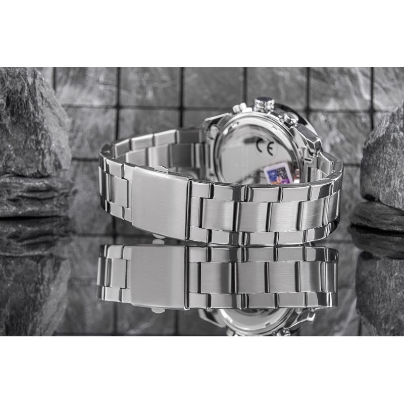 Die aus hochwertigem Edelstahl gefertigten Uhrenarmbänder von Skmei vereinen robuste Langlebigkeit mit ansprechender Eleganz. Ihre stabile Konstruktion steht nicht nur für Zuverlässigkeit, sondern garantiert auch, dass die Uhr sicher am Handgelenk sitzt – den Herausforderungen des Tages trotzend. Mit präziser, sicherer Schließe.