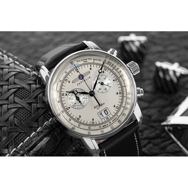 Zeppelin-Uhren zeichnen sich durch die Verwendung hochwertiger Materialien wie korrosionsbeständigem Edelstahl, besonders strapazierfähigen Lederarmbändern und kratzfestem Saphirglas aus. Viele Modelle verfügen zudem über Funktionen wie Datumsanzeige, Chronograph, Gangreserveanzeige und Mondphasenanzeige, was sie gleichermaßen praktisch und exklusiv macht. Die markanten Zifferblätter in Beige-, Schwarz- oder Cremeweißtönen, oft verziert mit filigranen gold- oder silberfarbenen Indizes und Zeigern, erinnern an die Eleganz von Luftschiffcockpits.