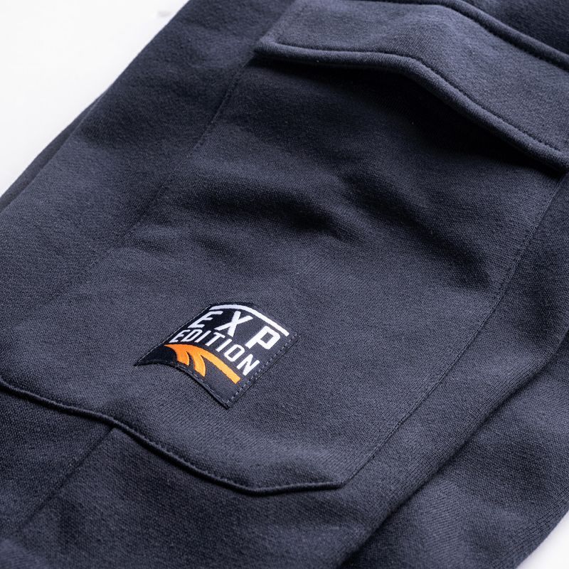 Dieses Modell verfügt über zwei Seitentaschen und zusätzliche Taschen an den Oberschenkeln. Ein breiter elastischer Bund mit Kordelzug ermöglicht eine individuelle Passform.