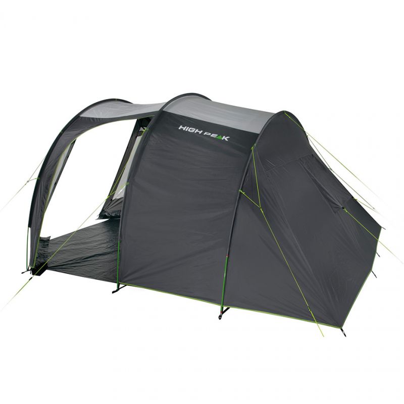 - Ein großes Zelt mit zwei Schlafzimmern und zwei Eingängen – vorne und seitlich.