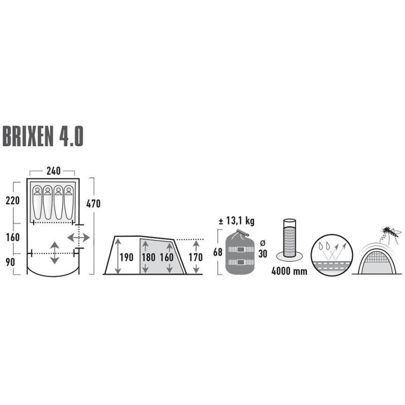 - Das Zelt High Peak Brixen 4.0 ist eine ideale Option für Leute, die in einer größeren Gruppe campen gehen.