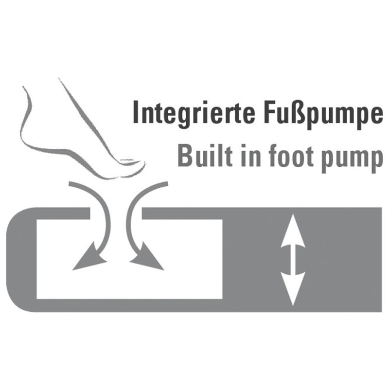 Mittelgroße Reisematratze aus Polyester für eine Person mit integrierter Pumpe.