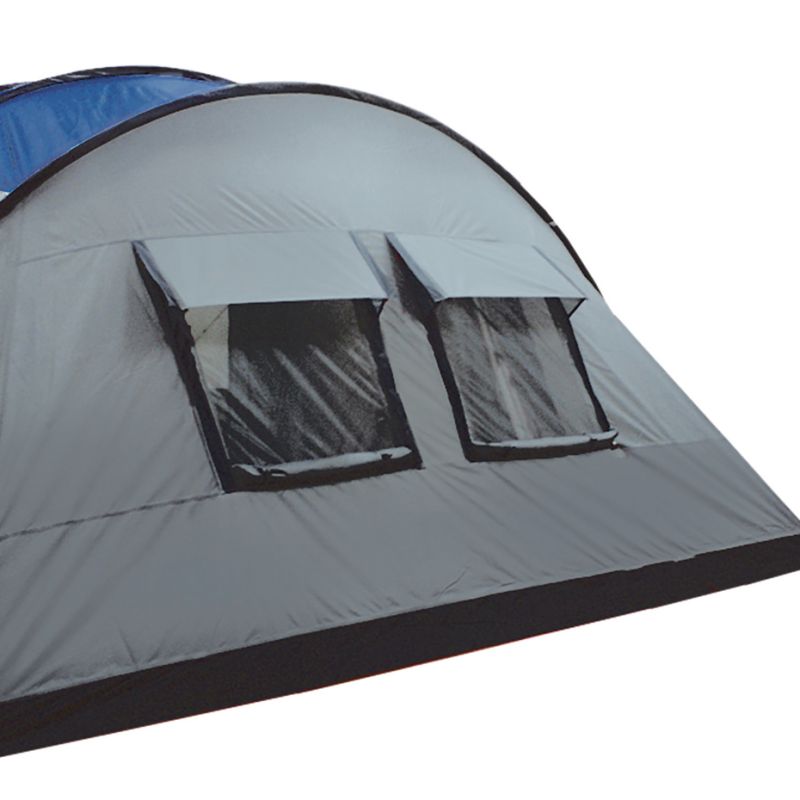 Ein 5-Personen-Zelt mit zwei Eingängen, einem großen Vorraum und zwei Schlafkabinen. Das High Peak Zelt verfügt über einen Vorraum mit Bodenplane, zwei separate Eingänge und Stahlstangen, die ein Vordach über dem Eingang ermöglichen. Laminierte Nähte und eine Wassersäule von 4000 mm bieten Schutz vor Regen. Belüftungslöcher sorgen für eine konstante Luftzirkulation.