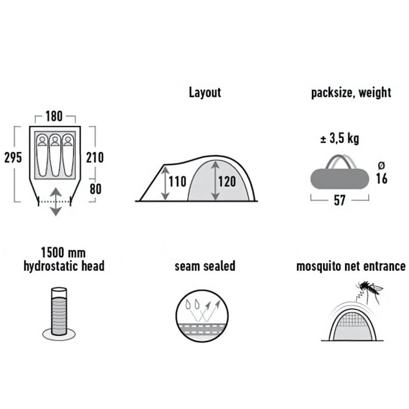 Material: Außenzelt – 100 % Polyester PU, PFC-frei