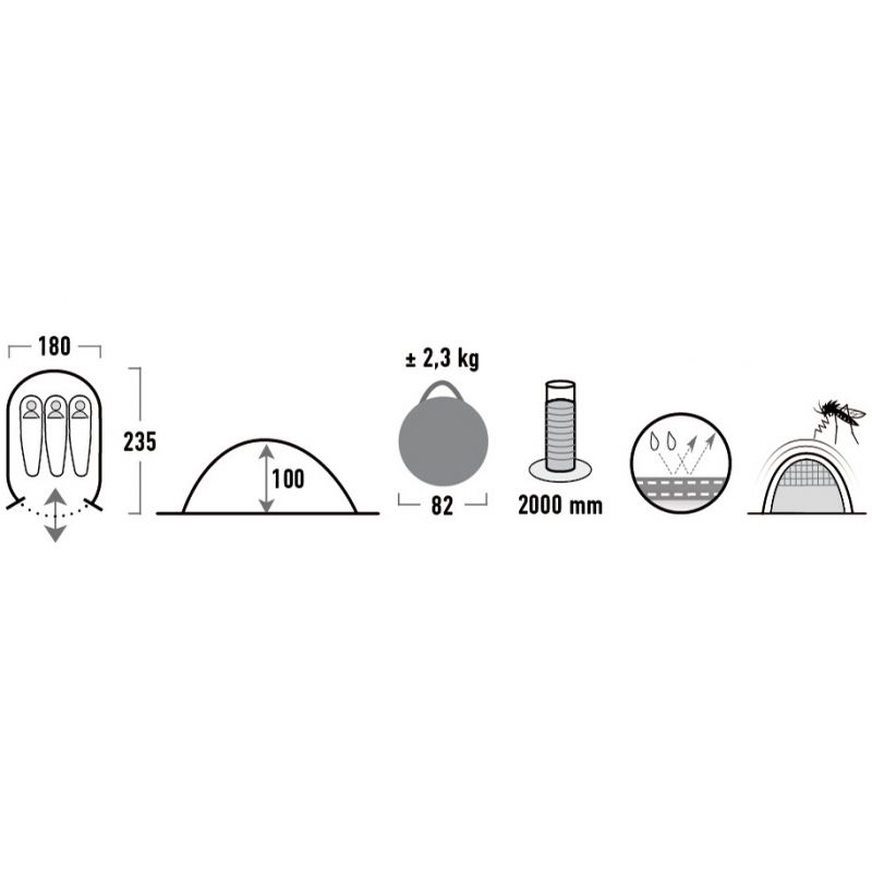 - Ein leichtes und schnell einsatzbereites Zelt für drei Personen.