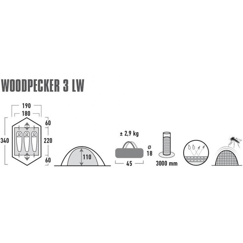 - Die raffinierte Konstruktion des High Peak Woodpecker Zeltes mit laminierten Nähten und einer 3000mm Wassersäule bietet guten Schutz vor Regen.