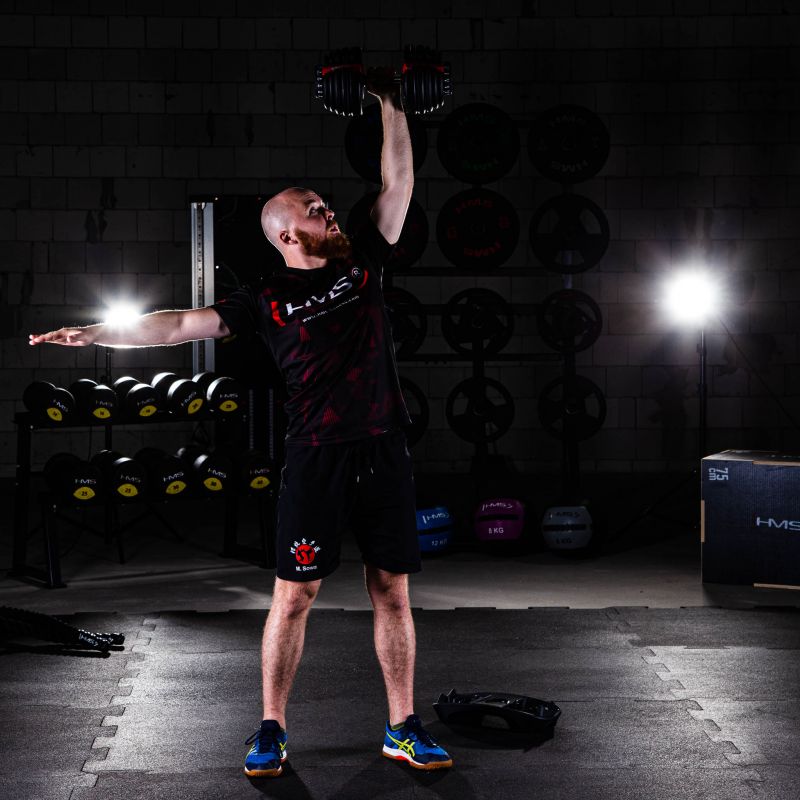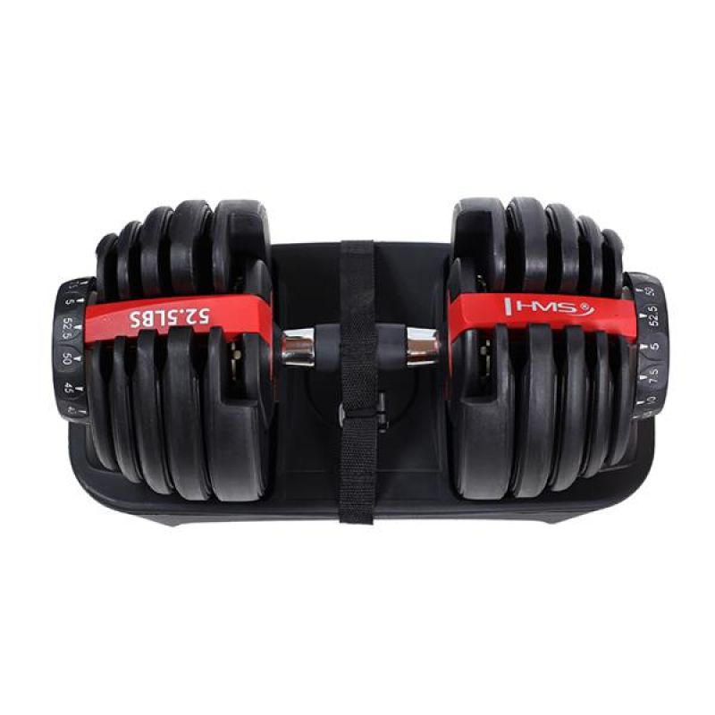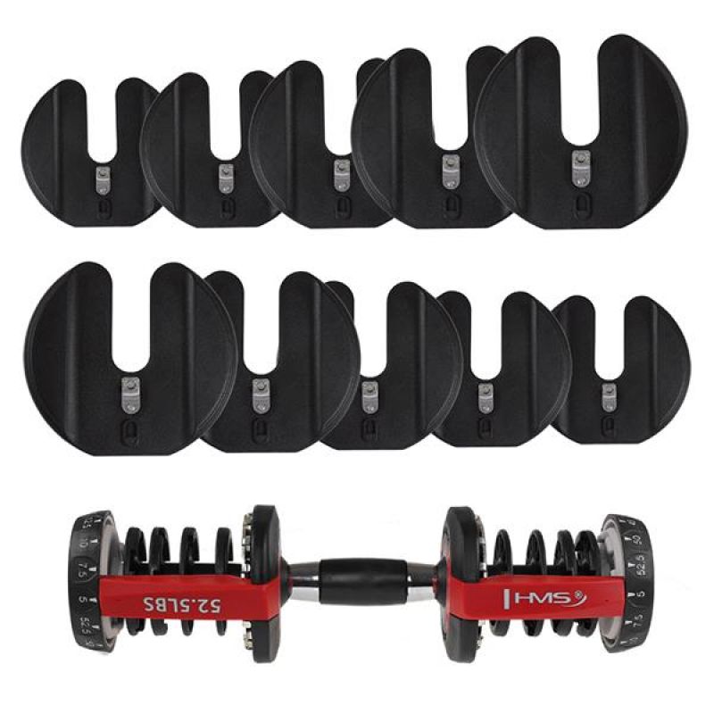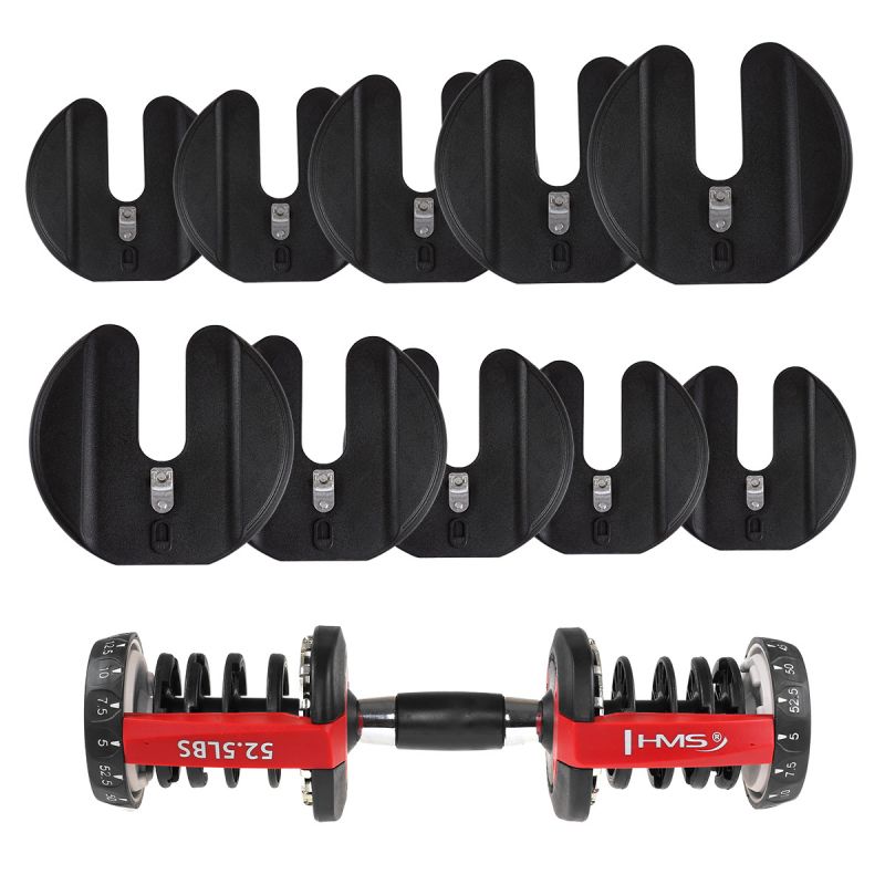 Die SR52 HMS ist eine verstellbare Hantel. Das Set enthält eine Stange, 10 Hantelscheiben und einen Ständer. Dieses Gerät eignet sich ideal für das Training zu Hause, kann aber auch im Fitnessstudio verwendet werden und ersetzt ein ganzes Hantelregal mit herkömmlichen Hanteln. Ein innovatives Montagesystem für die Hantelscheiben ermöglicht schnelle und einfache Gewichtsänderungen während des Trainings. Im Gegensatz zu herkömmlichen Hanteln erfordert das Abnehmen und Anbringen der Hantelscheiben kein ständiges Lösen von Klemmen oder Anbringen und Abnehmen der Hantelscheiben. Bei der SR52 legen Sie die Hantel einfach auf den Ständer und stellen das gewünschte Gewicht mit zwei Knöpfen ein. Beim erneuten Anheben der Hantel befinden sich die der gewählten Einstellung entsprechenden Hantelscheiben darauf. Das Produkt ist aus hochwertigsten Materialien gefertigt. Ein großer Vorteil der SR52 HMS ist der ergonomisch geformte Griff mit rutschfestem Material. Die verstellbaren HMS-Hanteln sind eine innovative Lösung für Kraftsportler – 10 Hantelscheiben ermöglichen eine flexible Gewichtsanpassung je nach Bedarf des Benutzers.
