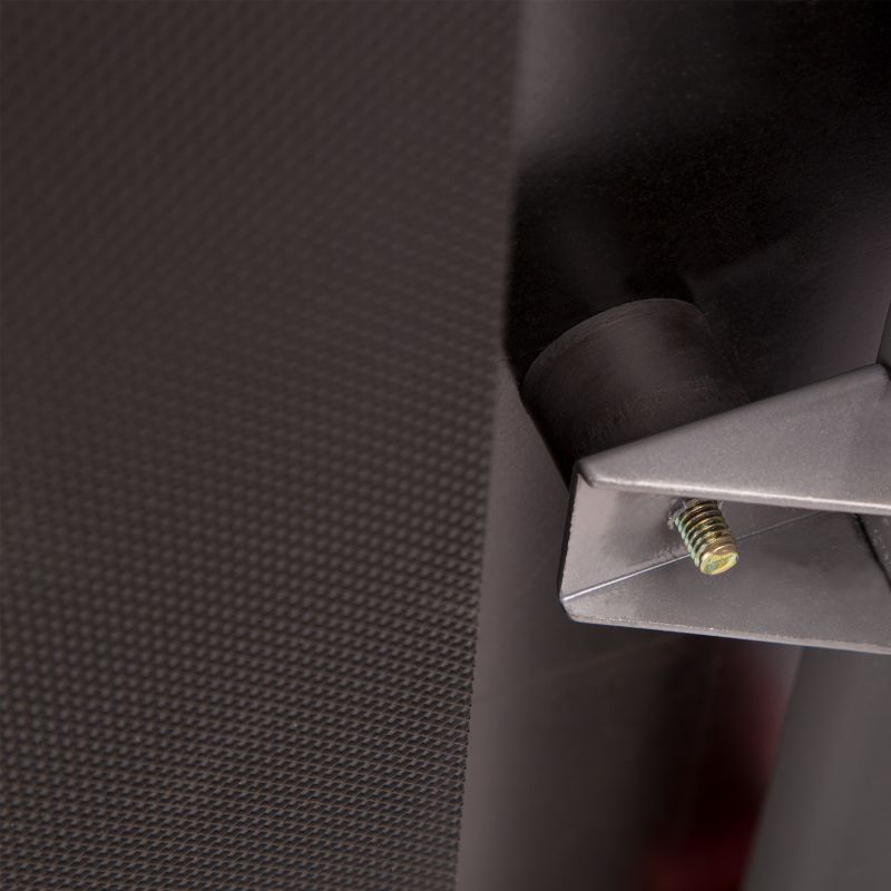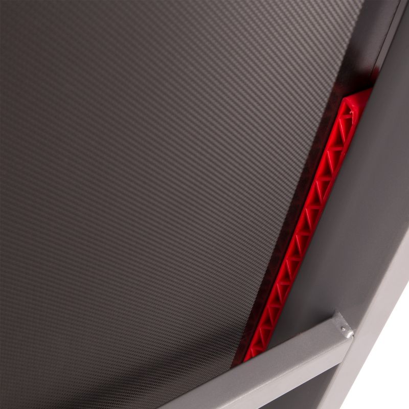 Stoßdämpfungssystem: 4 Elastomere und 2 Gummi-Stoßdämpfer zwischen den 2 Schichten des Laufbandrahmens