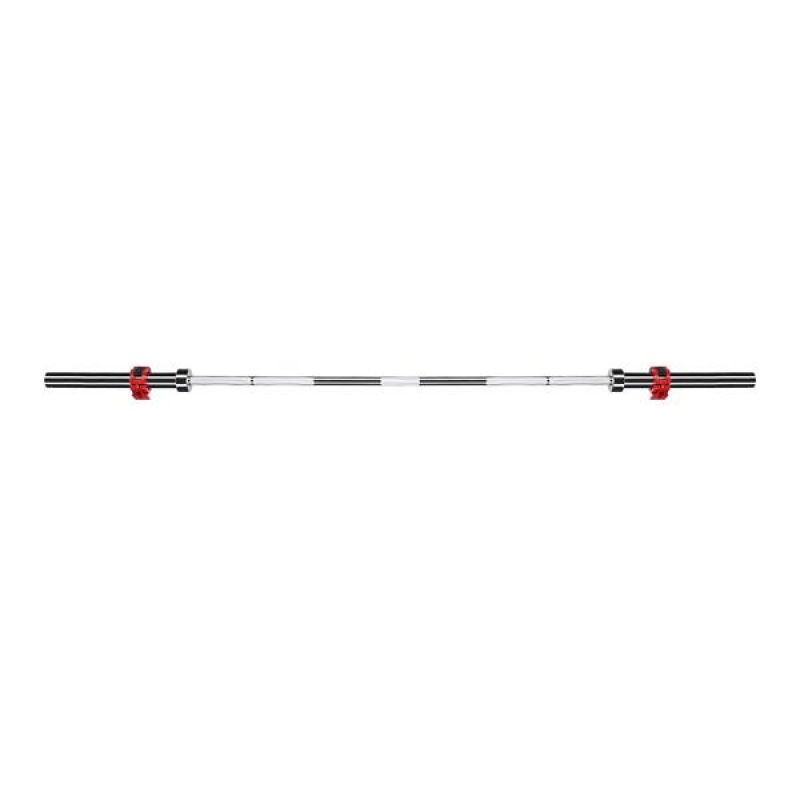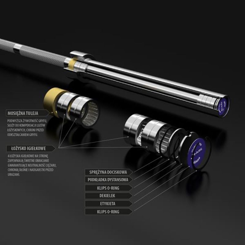 Die GO450 HMS Olympiastange besteht aus speziellem, verchromtem und gehärtetem Stahl. Dieses HMS-Produkt zeichnet sich durch Langlebigkeit und hervorragende Flexibilität aus. Zwei Klemmbacken sind im Lieferumfang enthalten. Die sorgfältig gerändelte Konstruktion sorgt für einen sicheren und bequemen Griff. Die maximale Tragkraft beträgt 450 Kilogramm. Der Griffdurchmesser von 30 Millimetern gewährleistet hohe Haltbarkeit und komfortables Training. Die Verchromung sorgt dafür, dass die Stange lange ihr Aussehen behält und bietet optimalen Rostschutz. Die GO700 HMS Olympiastange verfügt über vier Nadellager (zwei auf jeder Seite), die eine reibungslose Drehung der Stange unter Last ermöglichen. Durch die Konstruktion werden die Rollenenden nicht belastet, was zu einer längeren Lagerlebensdauer führt. Trotz ihres geringen Querschnitts sind die Nadellager sehr steif und belastbar. Die beiden im Set enthaltenen Klemmbacken garantieren eine stabile Gewichtsposition auf der Stange während des Trainings. Die Kappen sind innen mit Gummielementen versehen, um ein Lösen der Last zu verhindern.