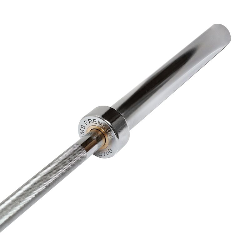 Die GO700 HMS Olympiastange besteht aus speziellem, verchromtem und gehärtetem Stahl. Dieses HMS-Produkt zeichnet sich durch Langlebigkeit und hervorragende Flexibilität aus. Zwei Klemmbacken sind im Lieferumfang enthalten. Die sorgfältig gerändelte Konstruktion sorgt für einen sicheren und bequemen Griff. Die maximale Tragkraft beträgt 700 Kilogramm. Der Griffdurchmesser von 30 Millimetern gewährleistet eine hohe Haltbarkeit und komfortables Training. Die Verchromung sorgt dafür, dass die Stange lange ihr Aussehen behält und bietet optimalen Rostschutz. Die GO700 HMS Olympiastange verfügt über acht Nadellager (vier auf jeder Seite), die eine reibungslose Drehung der Stange unter Last ermöglichen. Durch die Konstruktion werden die Rollenenden nicht belastet, was zu einer längeren Lagerlebensdauer führt. Trotz ihres geringen Querschnitts sind die Nadellager sehr steif und hoch belastbar. Die beiden im Set enthaltenen Klemmbacken garantieren eine stabile Gewichtsposition auf der Stange während der Übungen. Die Kappen sind innen mit Gummielementen versehen, um ein Lösen der Last zu verhindern.