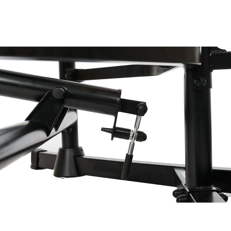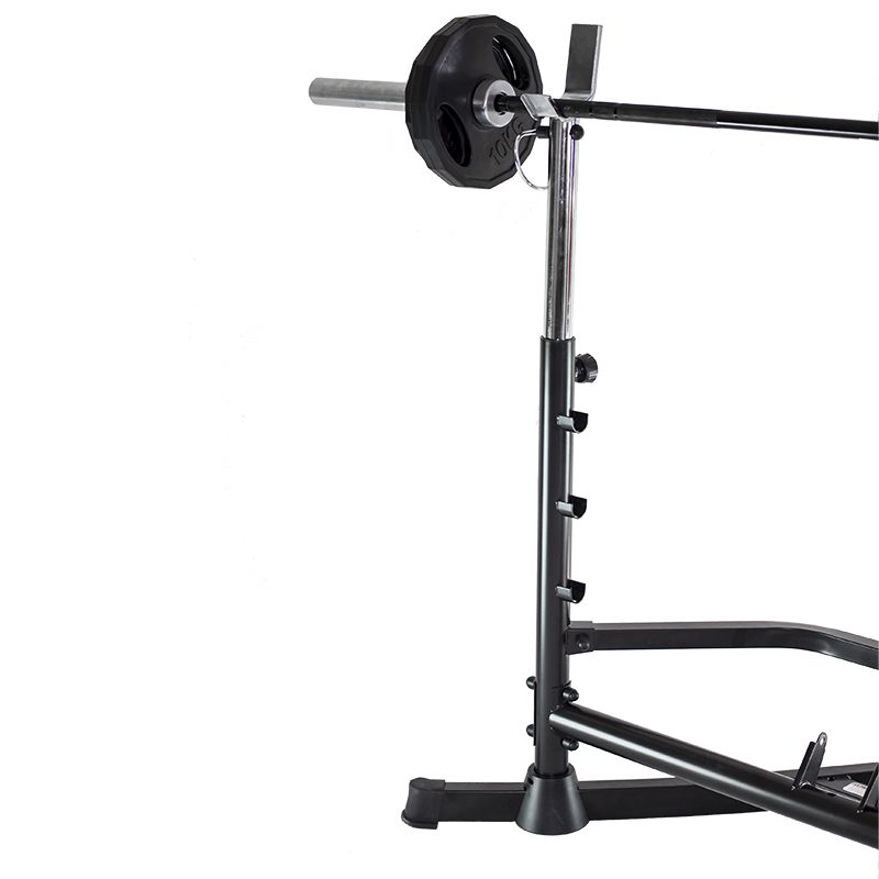 Das Produkt verfügt außerdem über eine verstellbare Stangenhöhe. Ein weiterer Vorteil der HMS Kraftstation ist die Möglichkeit, die Bank zusammenzuklappen, was Platz spart.
