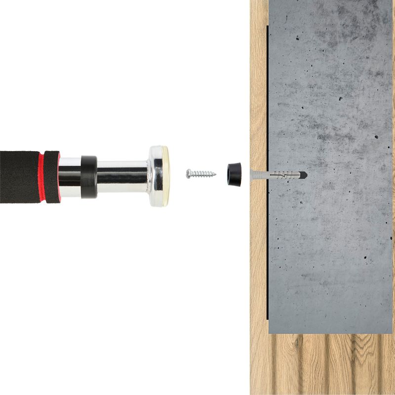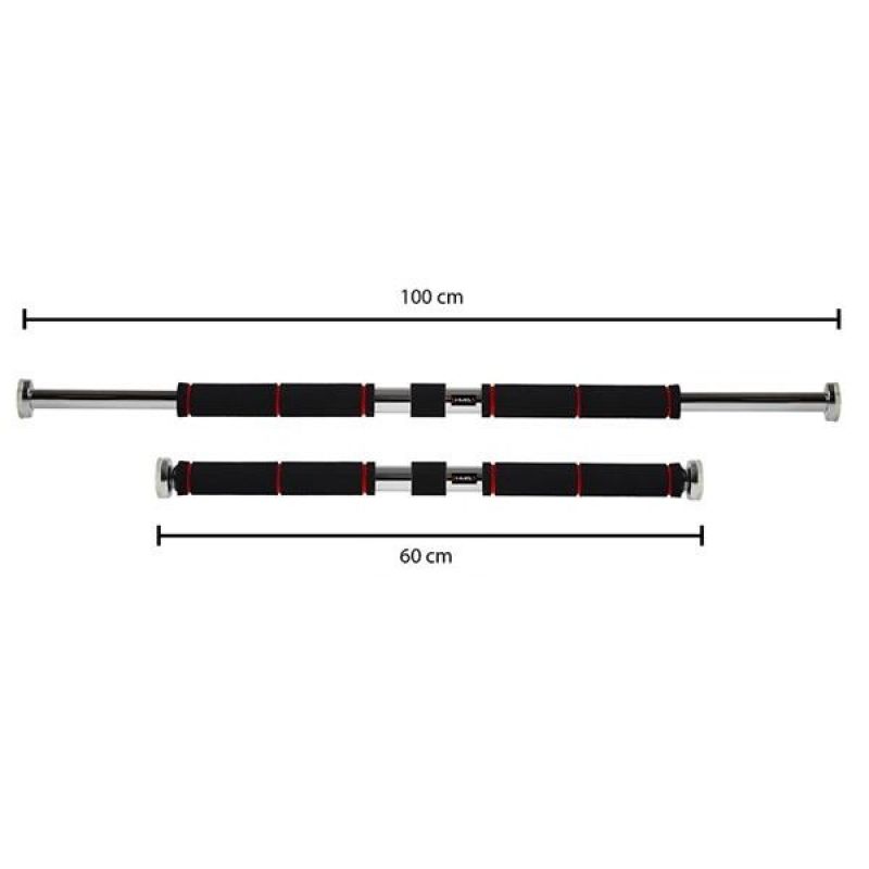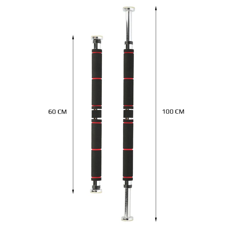 - Dank der vielfältigen Längenverstellung von 60 bis 100 cm lässt sich die Stange leicht an einem geeigneten Montageort montieren. Spezielle Schaumstoffgriffe verhindern ein Verrutschen. Die mitgelieferten Schrauben ermöglichen eine einfache Befestigung am Türrahmen.
