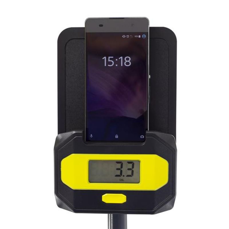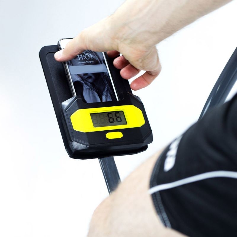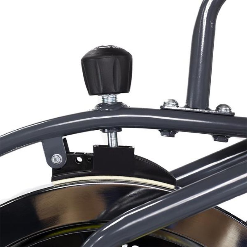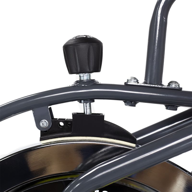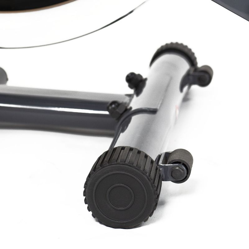 Das Widerstandssystem funktioniert über einen Druckmechanismus, bei dem Sie auf einen Filzwiderstandsblock drücken. Der Widerstand wird über einen Drehknopf eingestellt. Die Übungen sind sehr leise, sodass Sie niemanden in Ihrer Umgebung stören.