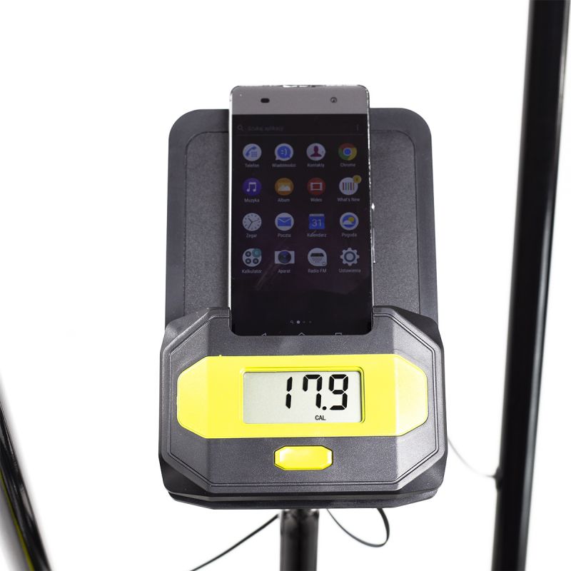 Das MP6590 HMS Bike ist mit modernster Technologie ausgestattet. Es ist aus hochwertigsten Materialien gefertigt und jede Komponente erstklassig verarbeitet. Dank seiner makellosen Konstruktion ist es sehr stabil und sicher. Selbst bei intensivem Training spüren Sie weder Vibrationen noch Wackeln. Der Widerstand des Bikes erfordert keine Kontrolle; er erhöht sich mit zunehmender Trittfrequenz. Da der einzige Widerstand Luft ist, ist das Bike sehr leise und das Training verläuft reibungslos. HMS hat auch auf Trainingskomfort geachtet. Der ergonomische, weiche und höhenverstellbare Sitz ermöglicht lange, angenehme Trainingseinheiten. Die an der Vorderseite montierten Transportrollen ermöglichen ein einfaches Bewegen des Geräts. Der Computer des MP6590 zeigt während des Trainings die wichtigsten Informationen an, einschließlich Ihrer Herzfrequenz, die über Touch-Sensoren am Lenker gemessen werden kann. Zusätzlich bietet der Computer eine sichere Ablage für Ihr Smartphone oder Tablet, falls Sie diese während des Trainings nutzen möchten.