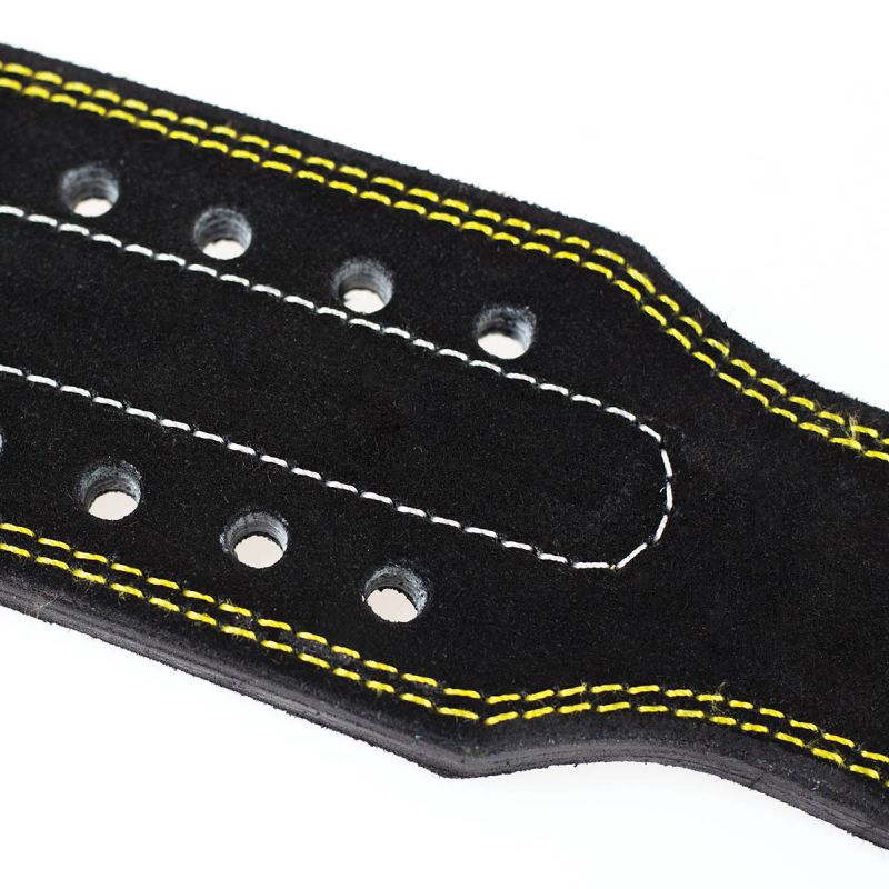 Der Gürtel besteht aus drei Lagen Leder und Schaumstoff und sorgt so für Langlebigkeit. Die innere Schicht ist mit einem weichen Schaumstoff überzogen, der die Haut vor Abrieb schützt und für Komfort beim Training sorgt. Der Gürtel verfügt über eine robuste Schnalle und zwei stabile Metallhaken für einen sicheren Sitz.
