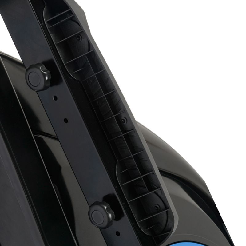 Das Gerät verfügt über breite (12 cm) rutschfeste Füße sowie eine vertikale und horizontale Schrittlängenverstellung, die auch großen Benutzern Komfort bietet. Die Trittflächen sind dreifach verstellbar. Für maximale Sicherheit sind alle Griffe mit einem speziellen Anti-Rutsch-Material überzogen.
