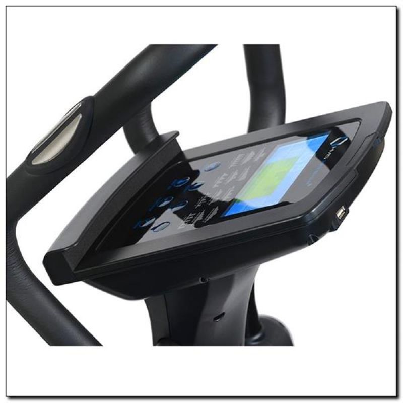 Der Ellipsentrainer ist außerdem mit Bluetooth-Technologie, Touch-Sensoren zur präzisen Pulsmessung und einem USB-Anschluss ausgestattet.
