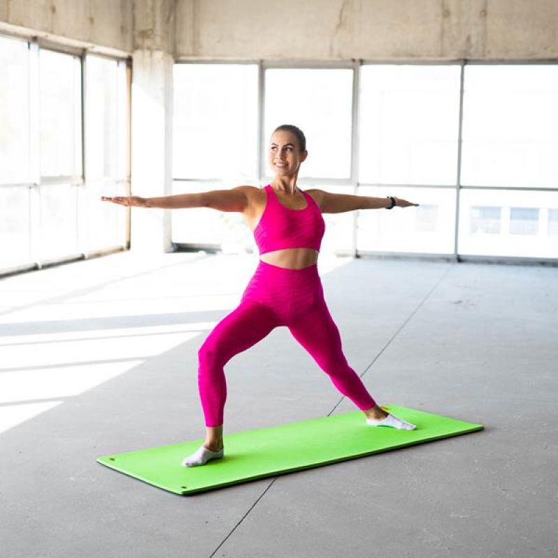 - Die rutschfeste Unterseite der Matte verhindert ein Verrutschen während des Trainings. Dies gewährleistet ein angenehmes Training unabhängig vom Untergrund.