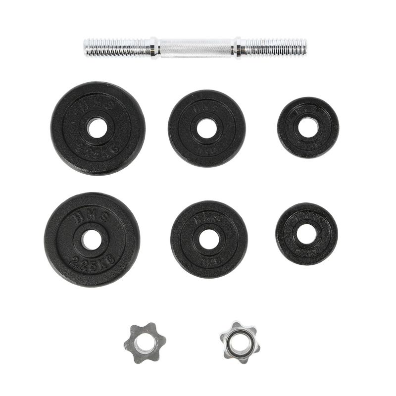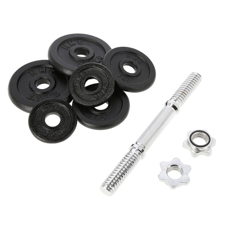 - Das Set beinhaltet: eine 2 kg schwere gerade Stange, 2 x 0,5 kg Scheiben, 2 x 1 kg Scheiben, 2 x 2,25 kg Scheiben und 2 x 0,25 kg Sternklemmen.