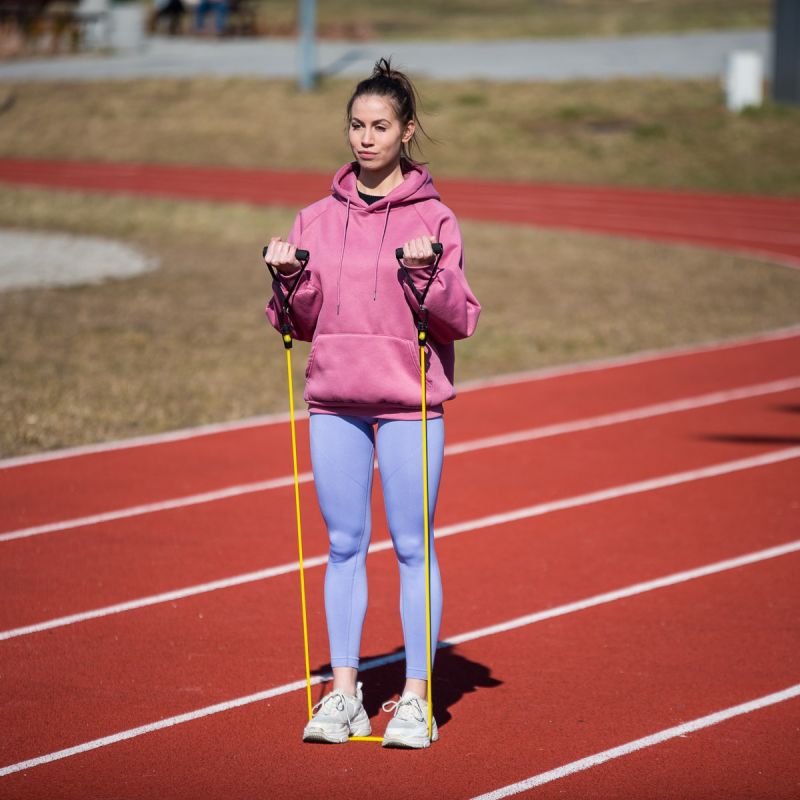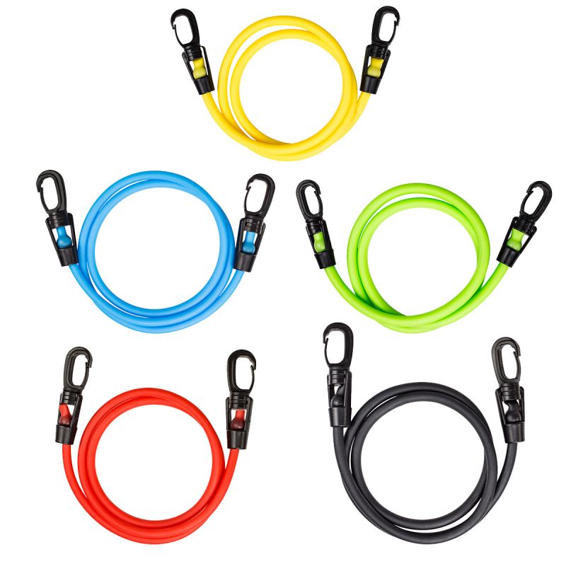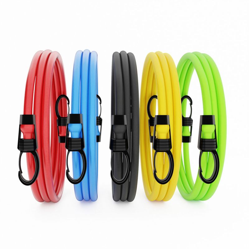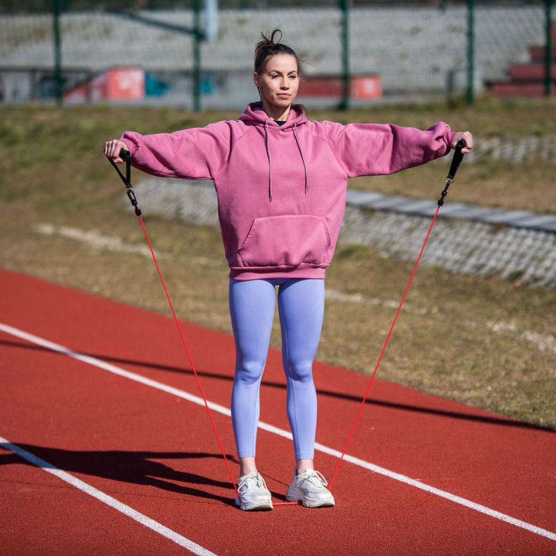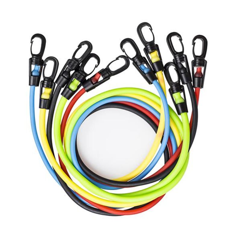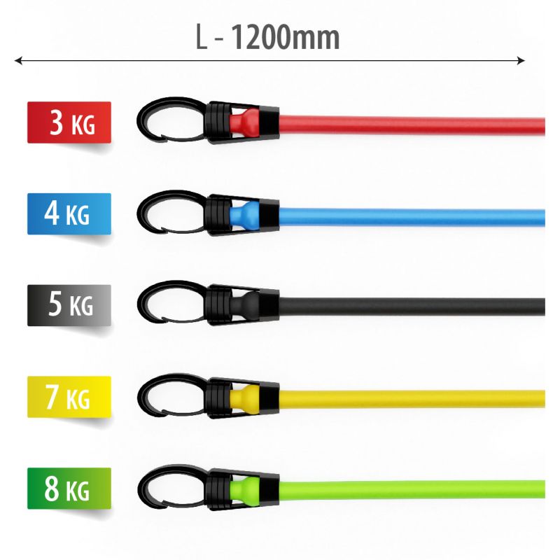 Die Bänder nutzen das Körpergewicht des Benutzers, um Fitness und Kraft zu verbessern. Hohe Qualität, durchdachtes Design und Langlebigkeit garantieren ein erfolgreiches Training unter allen Bedingungen. Das Set enthält fünf Widerstandsbänder, zwei Handgriffe, zwei Knöchelgriffe und einen Türgriff.