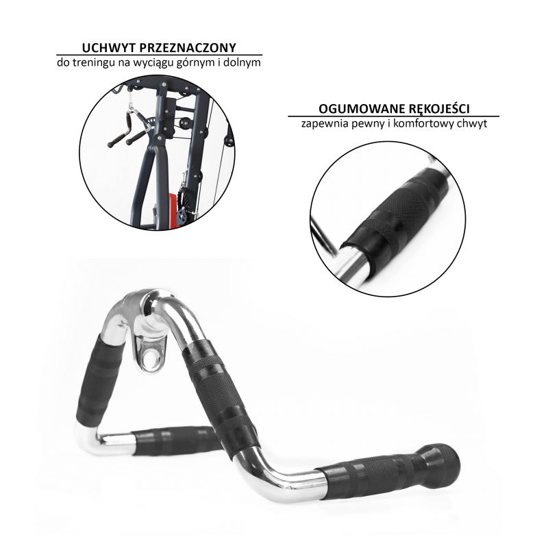Der UW11 HMS ist ein Griff, der sowohl für das Training mit hohen als auch mit niedrigen Seilzügen konzipiert ist. Er dient primär dem Training des Latissimus und kann bei richtiger Positionierung auch zum Training der Bauchmuskulatur eingesetzt werden. Die inneren Griffe ermöglichen das Training von Bizeps und Trizeps.