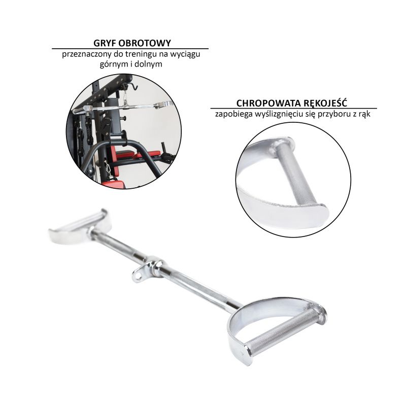 Die UW16 HMS ist eine rotierende Stange, die sowohl für das Training mit hohen als auch mit niedrigen Seilzügen konzipiert ist. Sie eignet sich für eine Vielzahl von Übungen, die verschiedene Muskelgruppen des Oberkörpers trainieren, von kleinen Muskelgruppen wie Bizeps und Trizeps über die vorderen und seitlichen Deltamuskeln bis hin zu den Latissimus- und Rückenstreckermuskeln.