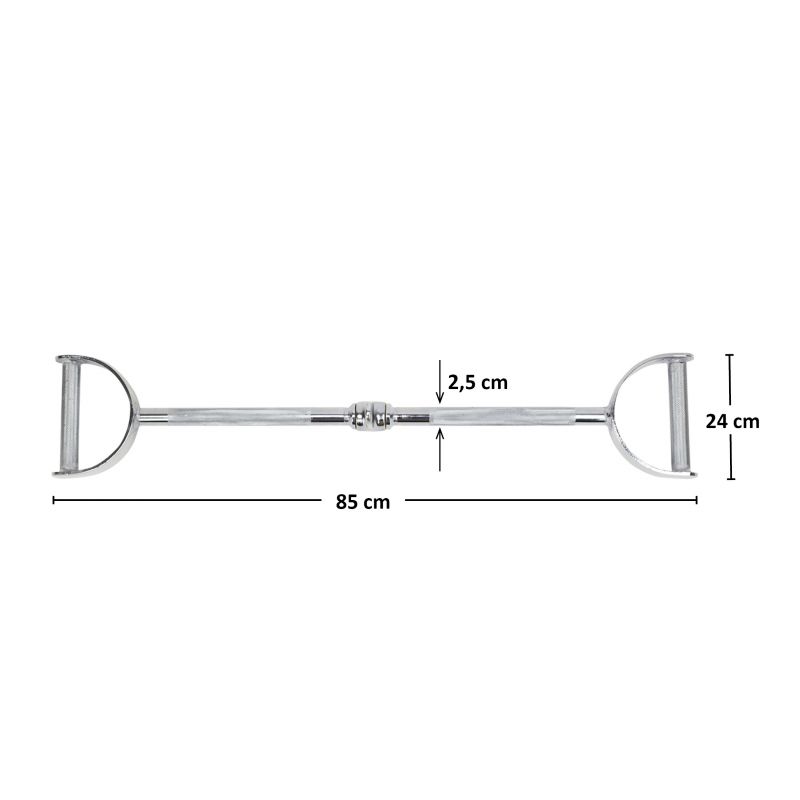 Die Länge ermöglicht verschiedene Griffvarianten, von sehr eng bis sehr weit. Dadurch kann die Stange beim Training an verschiedenen Ansatzpunkten Muskeln aufbauen. Die äußeren Griffe sind auf einen neutralen Griff eingestellt, sodass während der Übung alternative Muskelansätze angesprochen werden können. Der Griff besteht aus hochwertigem Stahl und ermöglicht so das Training mit hohen Gewichten. Der aufgeraute Griff verhindert zudem, dass das Gerät aus der Hand rutscht und erfordert einen festeren Griff, was zusätzlich den Aufbau der Unterarmmuskulatur fördert.