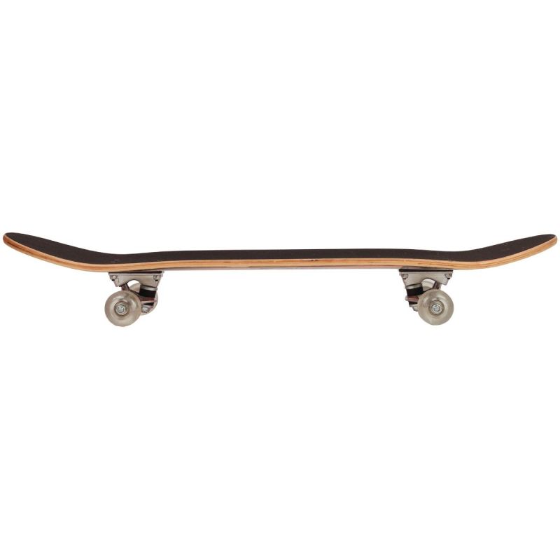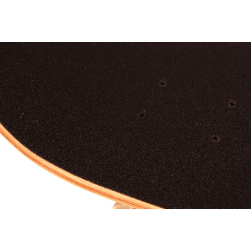 Das Deck aus mehrschichtigem, komprimiertem Ahorn bietet optimale Flexibilität und Langlebigkeit. Es dämpft Stöße und sorgt für hohen Fahrkomfort, selbst auf unebenen Oberflächen. Diese Konstruktion hält vielen intensiven Sessions stand.