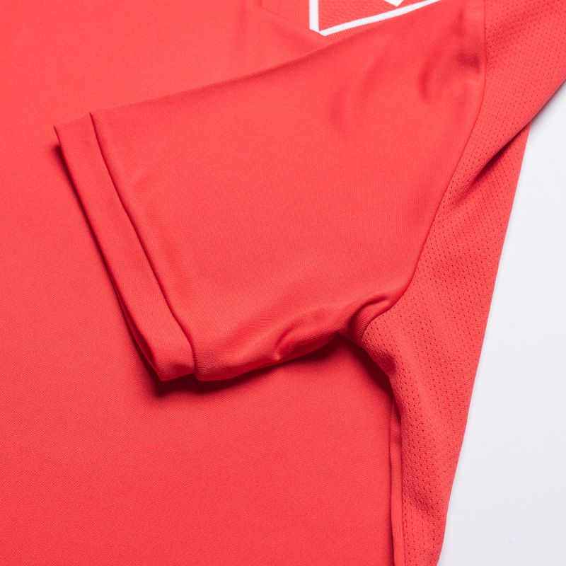 Das Huari ALUMNI POLAND JUNIOR Kinder-T-Shirt hat einen schlichten V-Ausschnitt und besteht aus synthetischem Material, das Schweiß effektiv von der Haut ableitet. Die Rückseite des Shirts ist mit einer Struktur aus Tausenden kleiner Löcher versehen, die den Feuchtigkeitstransport unterstützen. Abgerundet wird das Design durch den „Polska“-Schriftzug auf der Rückseite und die polnische Flagge auf der Brust.