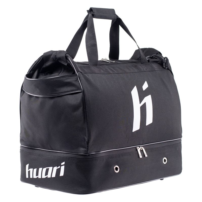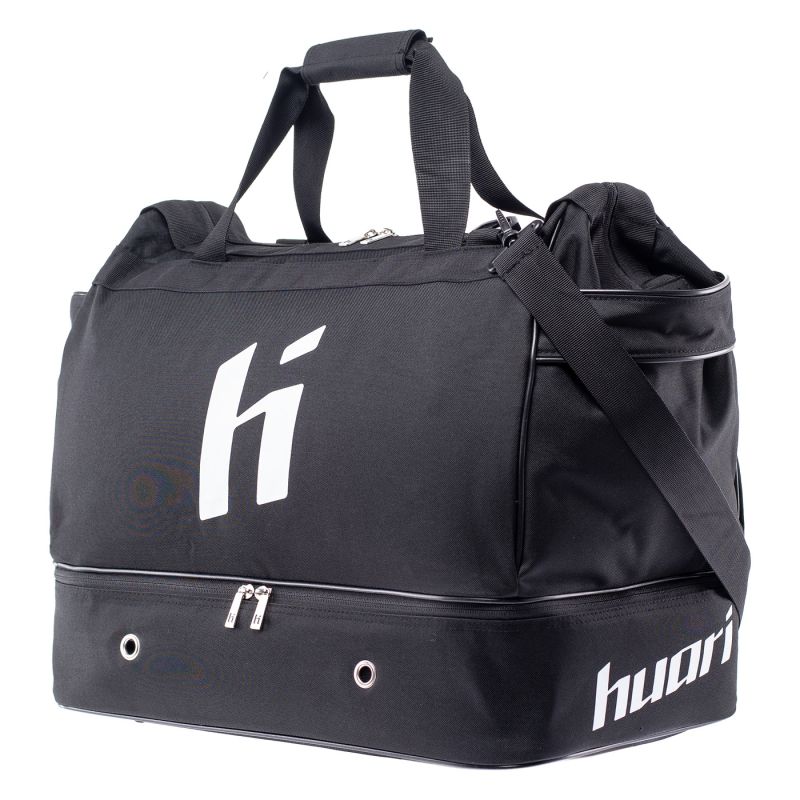 Die LUPA Sporttasche von Huari verfügt über ein geräumiges Hauptfach, in dem Sie alles Wichtige verstauen können. Tragegriffe und ein verstellbarer, abnehmbarer Gurt ermöglichen einen bequemen Transport. Das Modell LUPA verfügt über ein separates Schuhfach, und Belüftungslöcher sorgen für die Luftzirkulation. Das Design wird durch das markante Logo der Marke abgerundet.