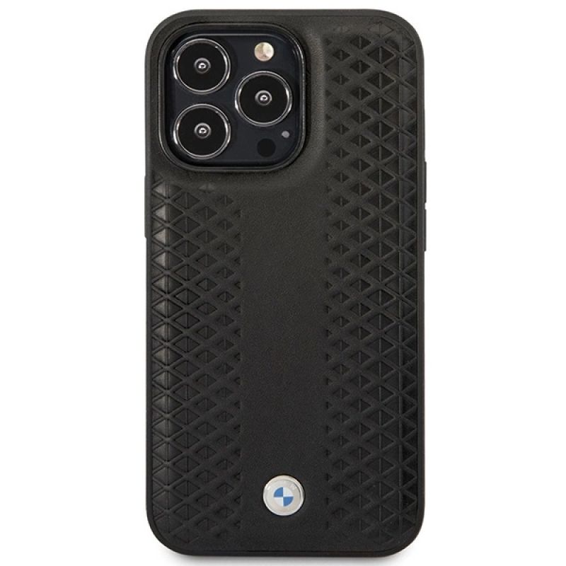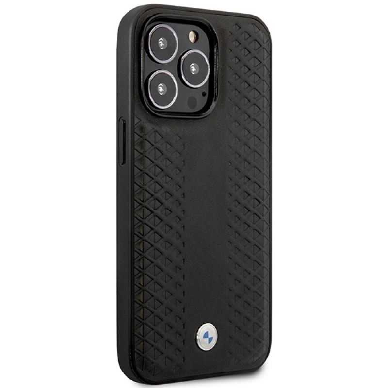 Hülle BMW BMHMP14L22RFGK iPhone 14 Pro 6.1" schwarz/schwarz Leder Rautenmuster MagSafe