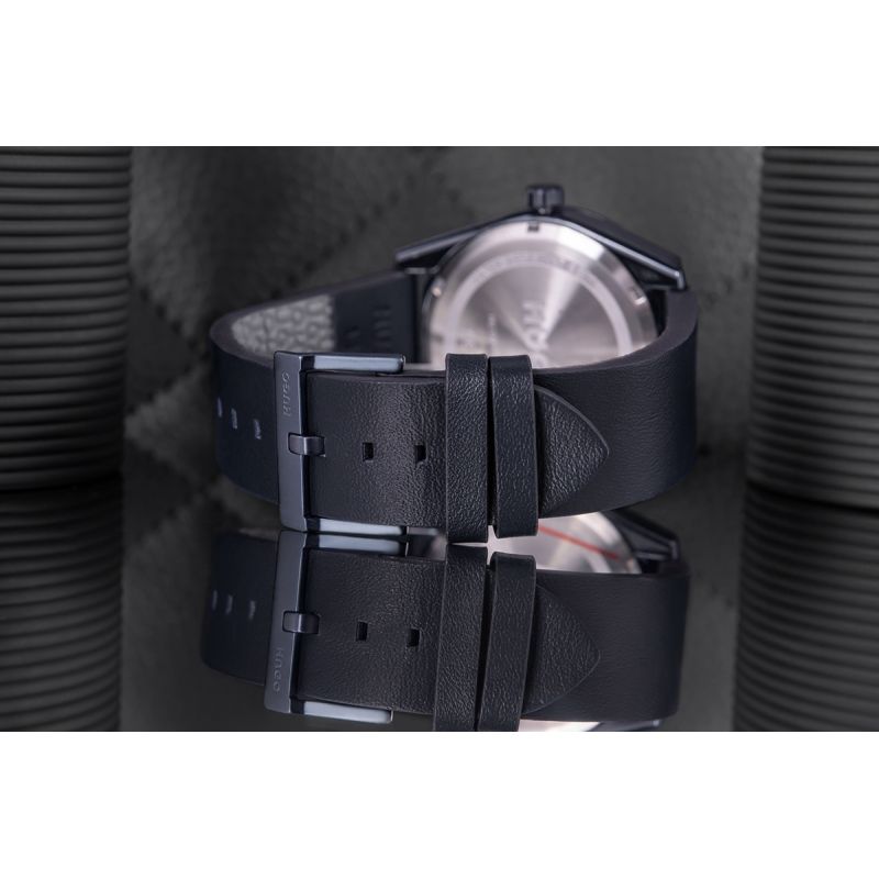 Hugo Bright ist mehr als nur eine Uhr. Sie ist Ausdruck von Klasse, Selbstbewusstsein und dem Anspruch, stets perfekt auszusehen. Denn ein echter Mann braucht nicht viel – nur eine perfekte Uhr, die seine Persönlichkeit unterstreicht. Das matte Marineblau des Gehäuses harmoniert perfekt mit dem satinierten Zifferblatt und schafft einen harmonischen und zugleich maskulinen Look. Die Indizes und Zeiger sind minimalistisch, aber ausdrucksstark genug, um sofort ins Auge zu fallen. Das Design ist dezent und doch markant – perfekt für den Mann, der Wert auf Stil ohne Schnickschnack legt. Dieses Modell passt zu jedem Outfit – vom Anzug über elegante Freizeitkleidung bis hin zum Alltagslook.