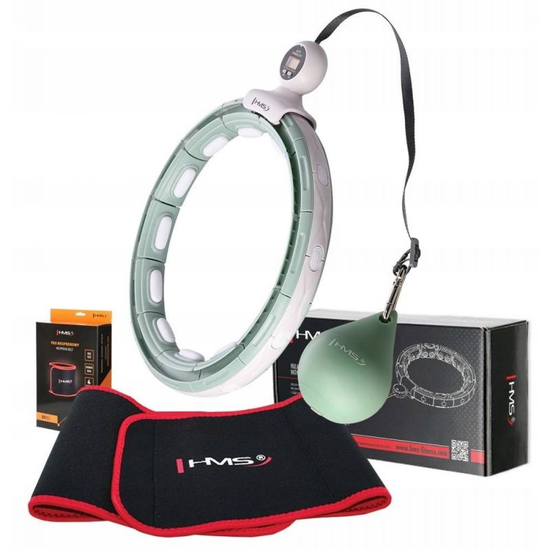 3. Hula Hop HMS HHM15 mit Zähler und Schwerkraftball grün + Gurt BR163 rot Set