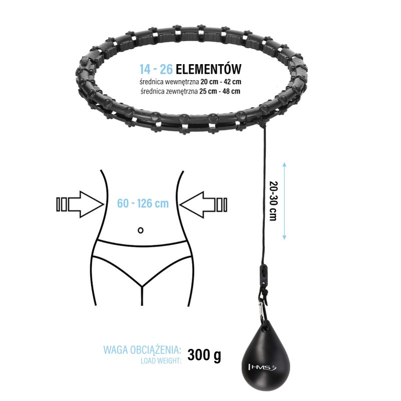 5. Hula Hop Set HHW11 SCHWARZ mit Nieten und Gewicht + BR163 SCHWARZER HMS-Gürtel in Übergröße