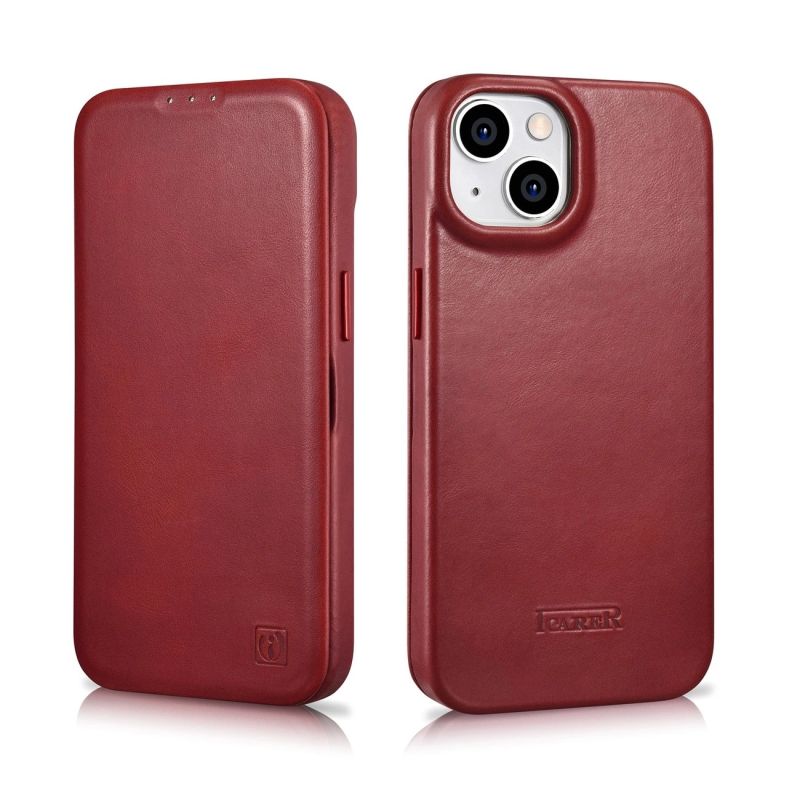 iCarer CE Oil Wax Premium Leather Folio Case iPhone 14 Plus Magnetic Flip Leather Folio Case MagSafe Red (AKI14220707-RD)
