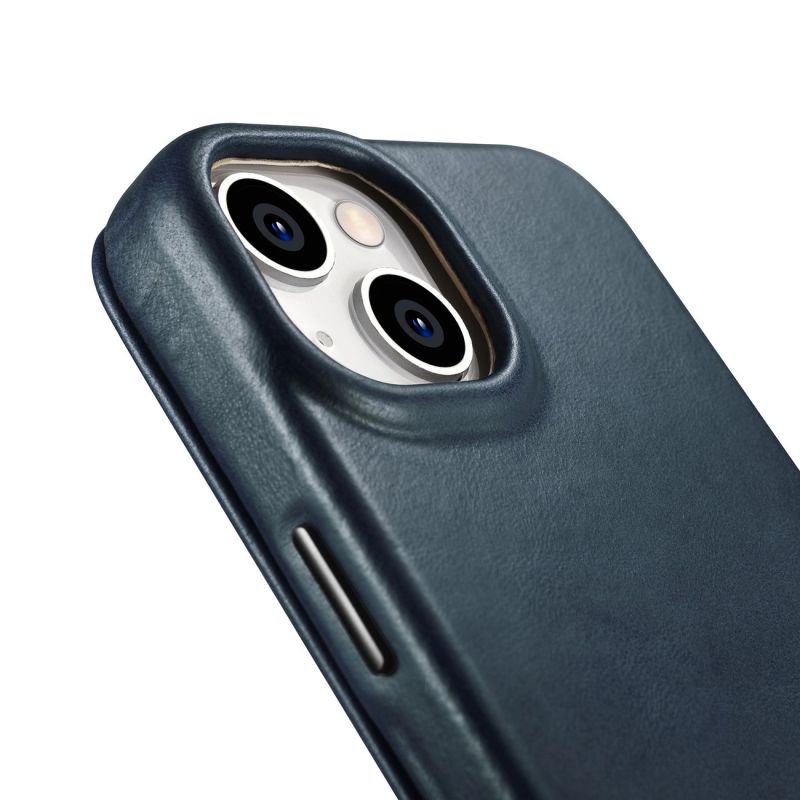 iCarer CE Oil Wax Premium Leather Folio Case iPhone 14 Plus magnetische Klapphülle MagSafe blau (AKI14220707-BU)