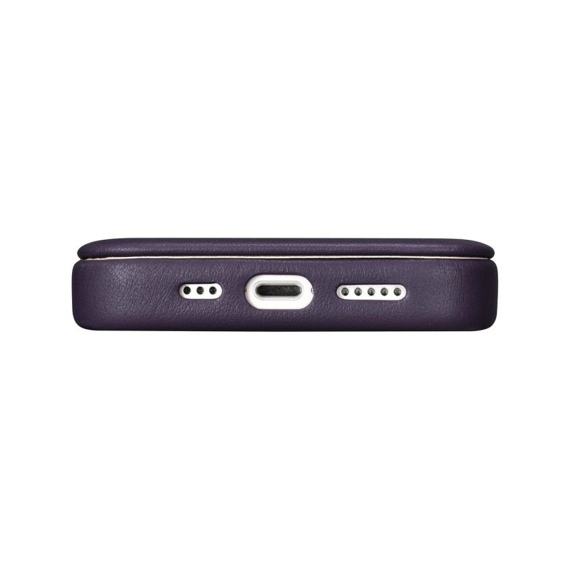iCarer CE Premium Leather Folio Case iPhone 14 Plus Magnetic Flip Leather Folio Case MagSafe Dark Purple (WMI14220715-DP)