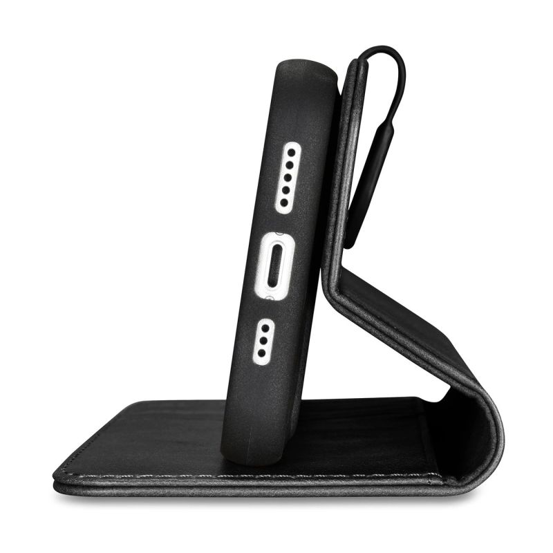 iCarer Oil Wax Wallet Case 2in1 Cover iPhone 14 Plus Anti-RFID Leder Flip Case Schwarz (WMI14220723-BK)