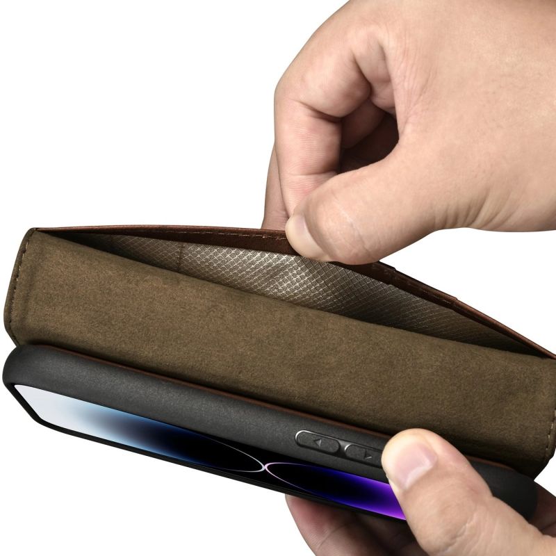 iCarer Oil Wax Wallet Case 2in1 Cover iPhone 14 Pro Anti-RFID Leder Flip Case Braun (WMI14220722-BN)