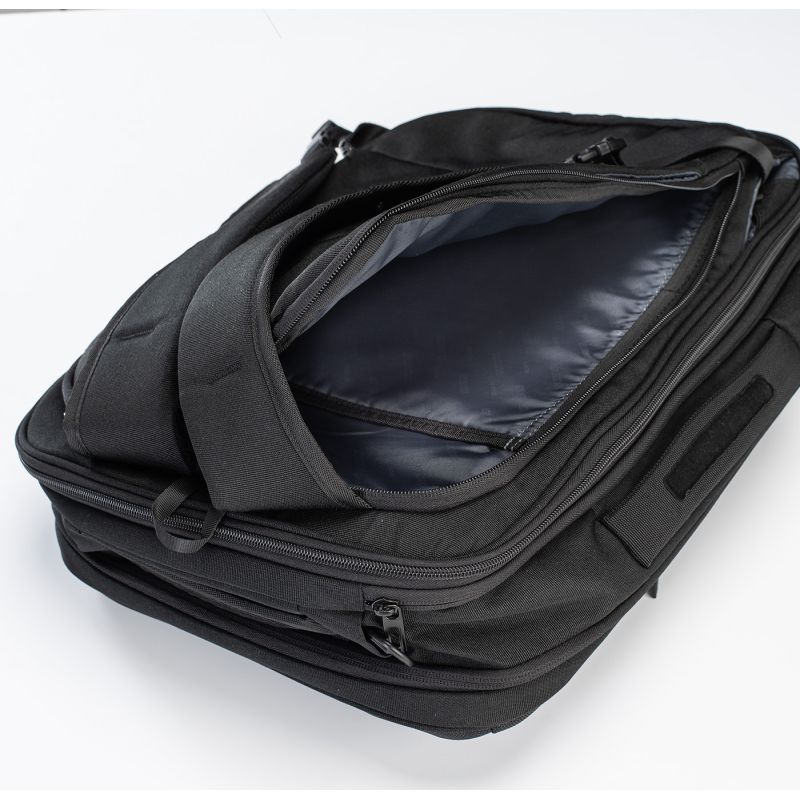Der CALATOR ist ein Rucksack für Vielreisende. Er verfügt über ein geräumiges Hauptfach, das wie ein Koffer über einen seitlichen Reißverschluss und den Hauptreißverschluss zugänglich ist. Im Inneren befinden sich ein Organizer und eine kleine Reißverschlusstasche. Ein abnehmbarer, verstellbarer Gurt verwandelt den Rucksack in eine Tragetasche, die Sie am kurzen Griff tragen können. Der CALATOR hat ein spezielles Laptopfach, in dem Sie Ihre Ausrüstung sicher transportieren können. Und das ist noch nicht alles. Einziehbare Schultergurte erleichtern das Tragen des Rucksacks, wenn er in eine Tasche umgewandelt ist. Für längere Reisen kann der CALATOR an einem einziehbaren Koffergriff befestigt werden. Die Vorderseite verfügt über mehrere Taschen. Eine ist wasserdicht, sodass Sie einen nassen Regenschirm verstauen können. Die andere, mit weichem Material gefütterte Tasche bietet Platz für Sonnenbrillen und eine Powerbank. Eine weitere kann andere wichtige Dinge für Reisen oder Meetings aufnehmen. Der CALATOR – ein Rucksack, viele Verwendungsmöglichkeiten!