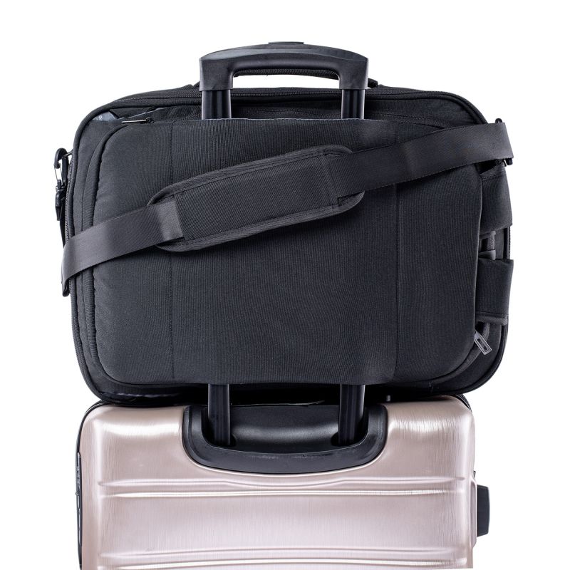 - Möglichkeit, den Rucksack am Griff eines Koffers zu befestigen