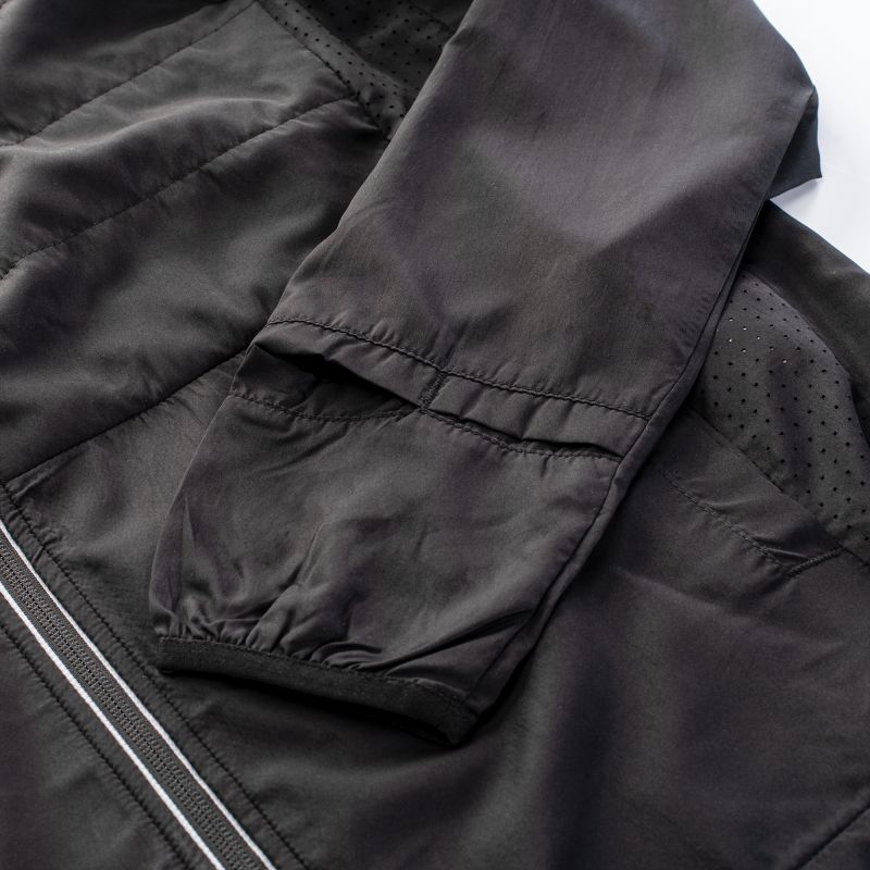 LAUFJACKE GRÖSSE: S-XXL MATERIALZUSAMMENSETZUNG: MATERIAL 1: 100 % POLYESTER MATERIAL 2: 100 % POLYESTER SPEZIFIKATIONEN: - WINDDICHT - ATMUNGSAKTIV - SCHNELLTROCKNEND - IQ DRY TECHNOLOGIE - DAUMENÖFFNUNGEN - RÜCKENTASCHE - SBS-REISSVERSCHLUSS - REFLEKTIERENDE ELEMENTE