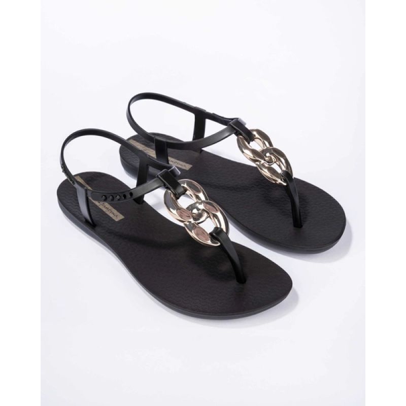 Ipanema Sandal Class modische schwarz-goldene Flip-Flops für Damen